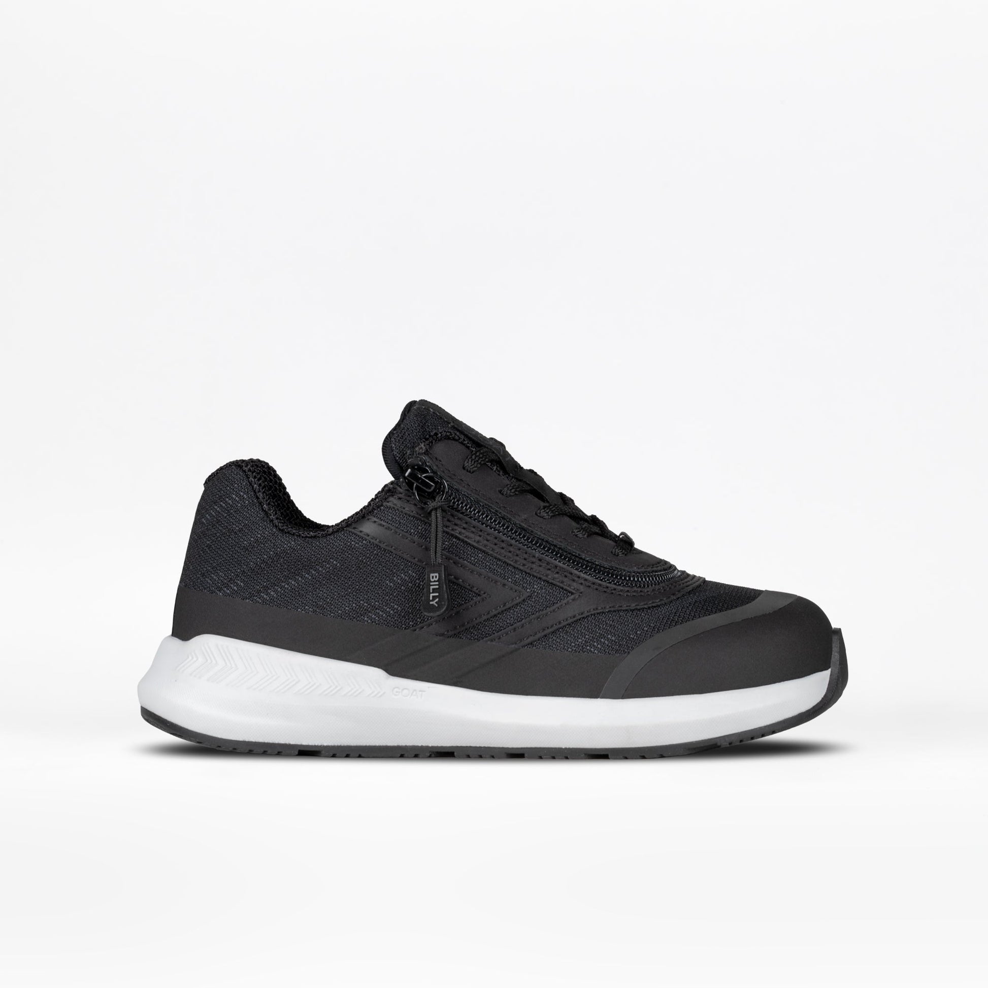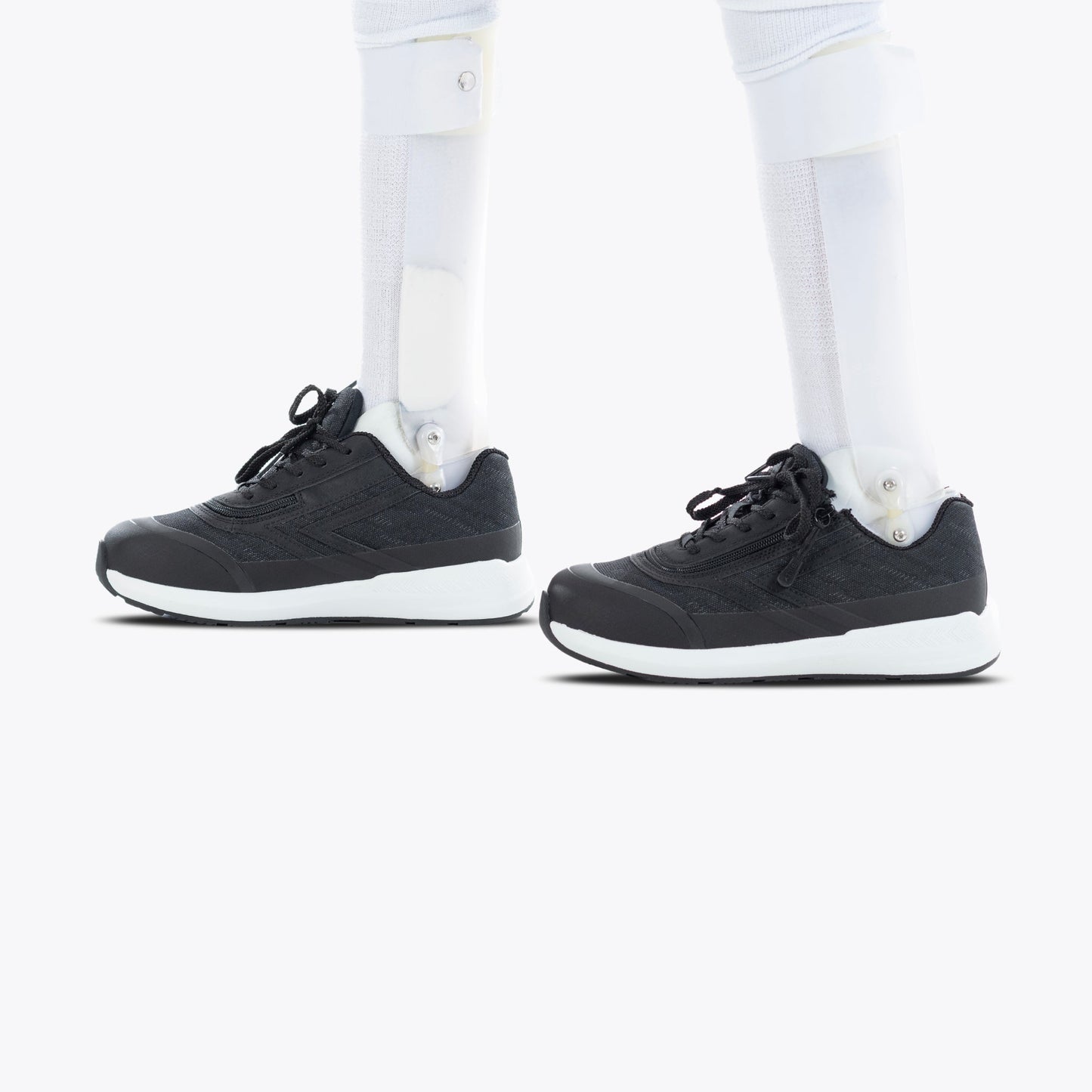 Step In! to innovation. Made in collaboration with Boston Orthotics & Prosthetics, the Black BILLY Goat AFO-Friendly Shoes are sure to provide the functional solution you have been looking for. Along with the short wrap zipper for convenient donning and doffing, the Goat sets itself apart making it our most AFO-friendly solution.