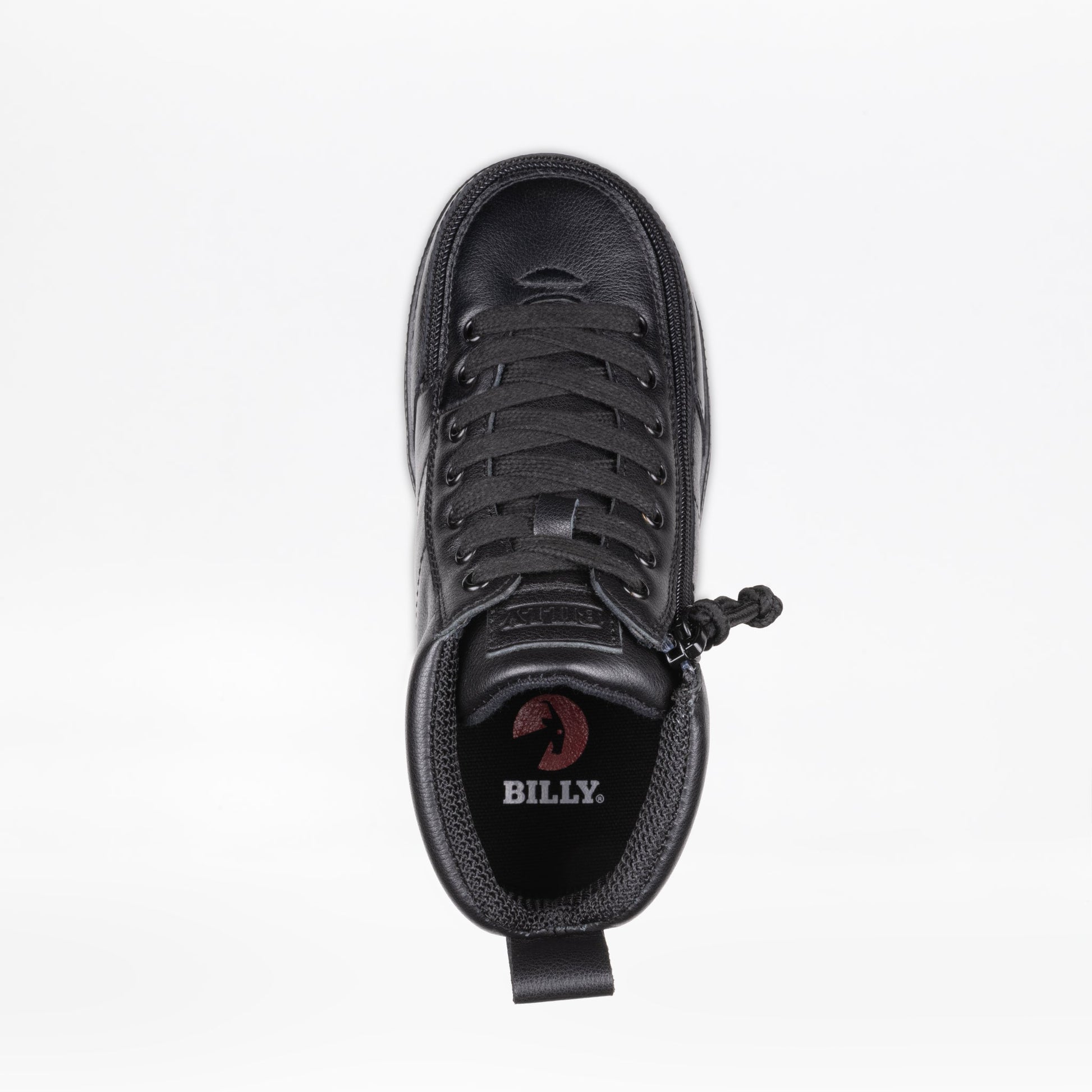 The Black to the Floor Leather BILLY Classic D|R II High Top AFO-friendly shoes consist of three widths: Medium (MDR), Wide (WDR), and Extra-Wide (XDR). The laces on these shoes are functional for an adjustable fit. The thick knit polyester fabric upper lining adds durability for increased tear resistance. The full-wrap zipper closure allows for unobstructed fun and easy entry into the shoe. The insole board and outsole rubber compound helps withstand toe and heel striking. And the two removable insoles (3mm each) provides adjustable depth for custom orthotics.