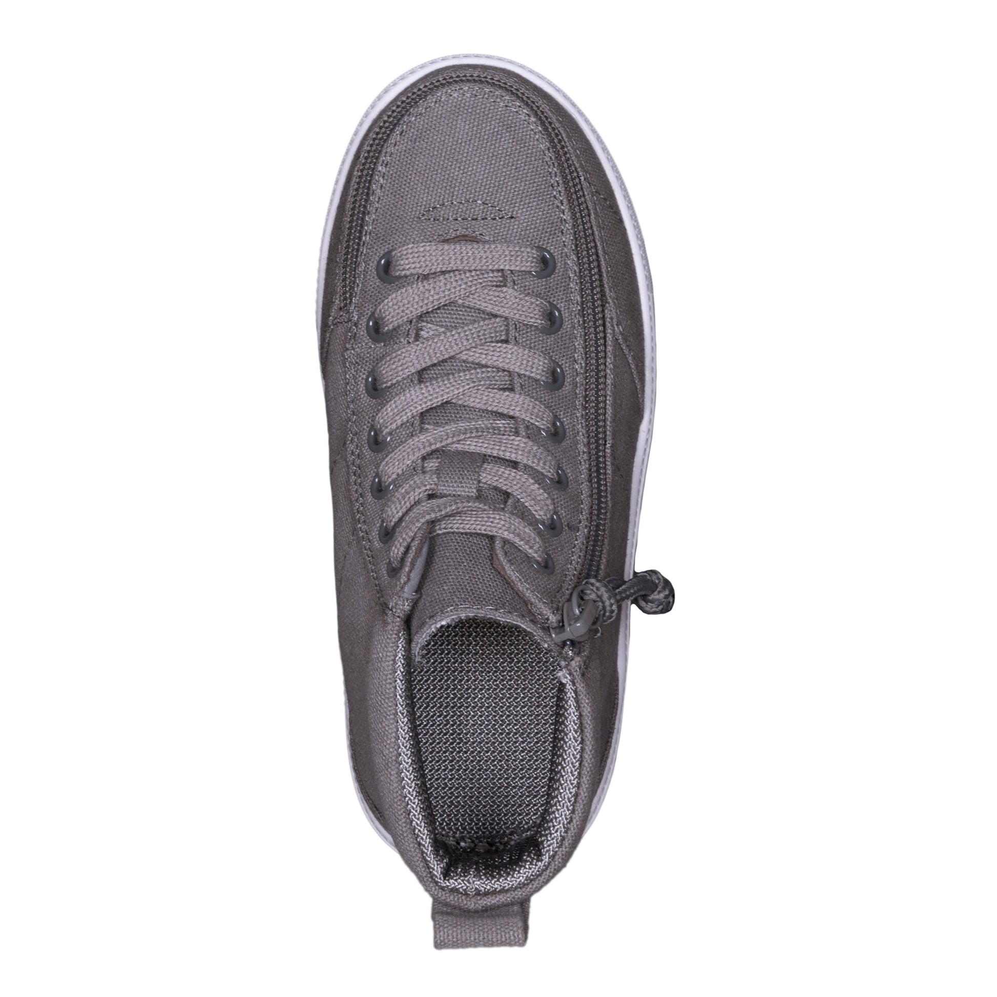 The Dark Grey BILLY Classic D|R High Top AFO-friendly shoes consist of three widths: Medium (MDR), Wide (WDR), and Extra-Wide (XDR). The laces on these shoes are functional for an adjustable fit. The thick knit polyester fabric upper lining adds durability for increased tear resistance. The full-wrap zipper closure allows for unobstructed fun and easy entry into the shoe. The insole board and outsole rubber compound helps withstand toe and heel striking. And the two removable insoles (3mm each) provides adjustable depth for custom orthotics.